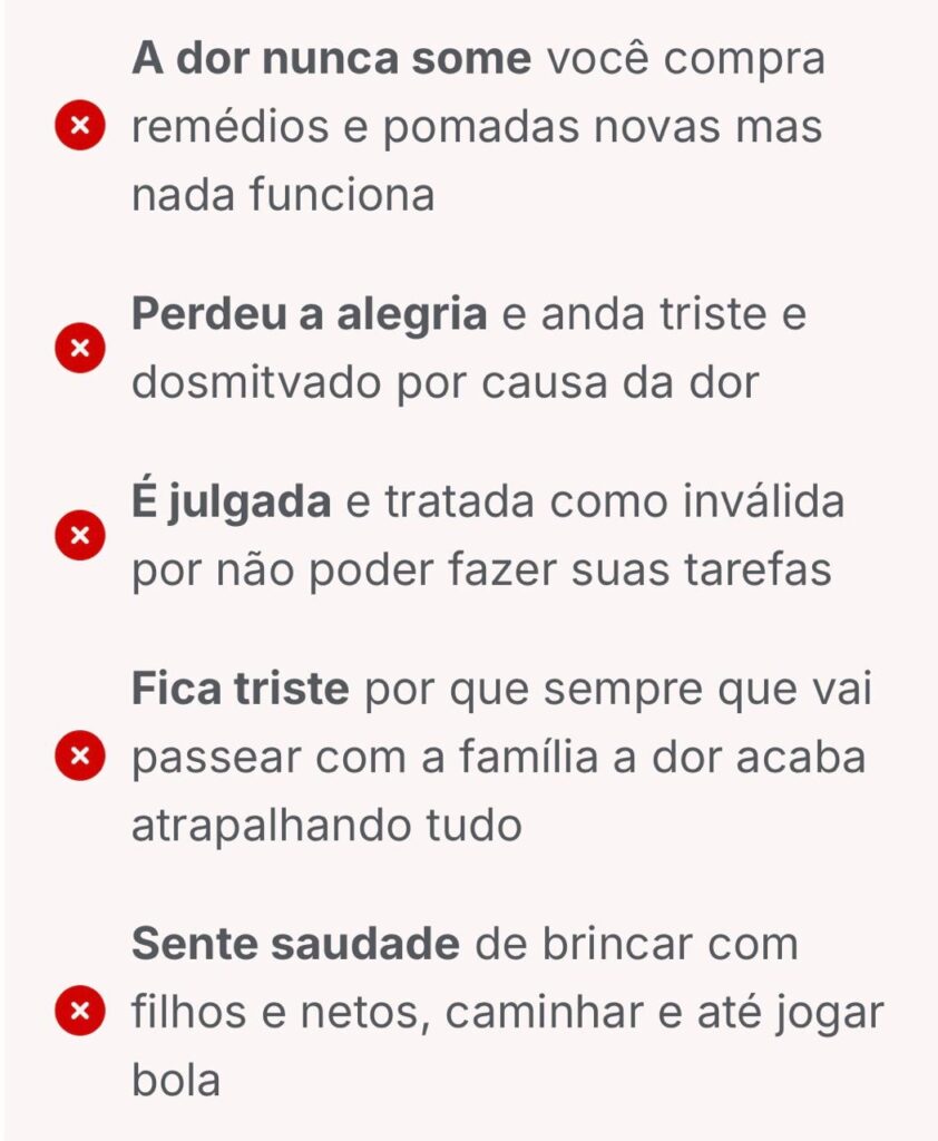 ❌ Nunca mais se preocupe com as dores que interrompem seus momentos de lazer e passeios com a família.